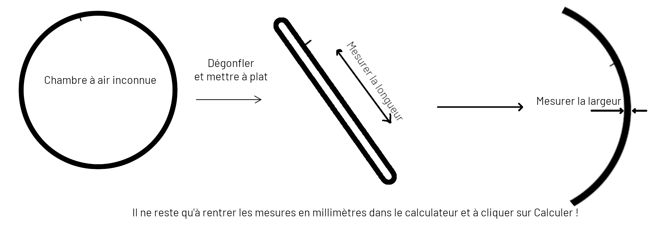 - enfin, mesurer la largeur (en mm) de la chambre à air applatie