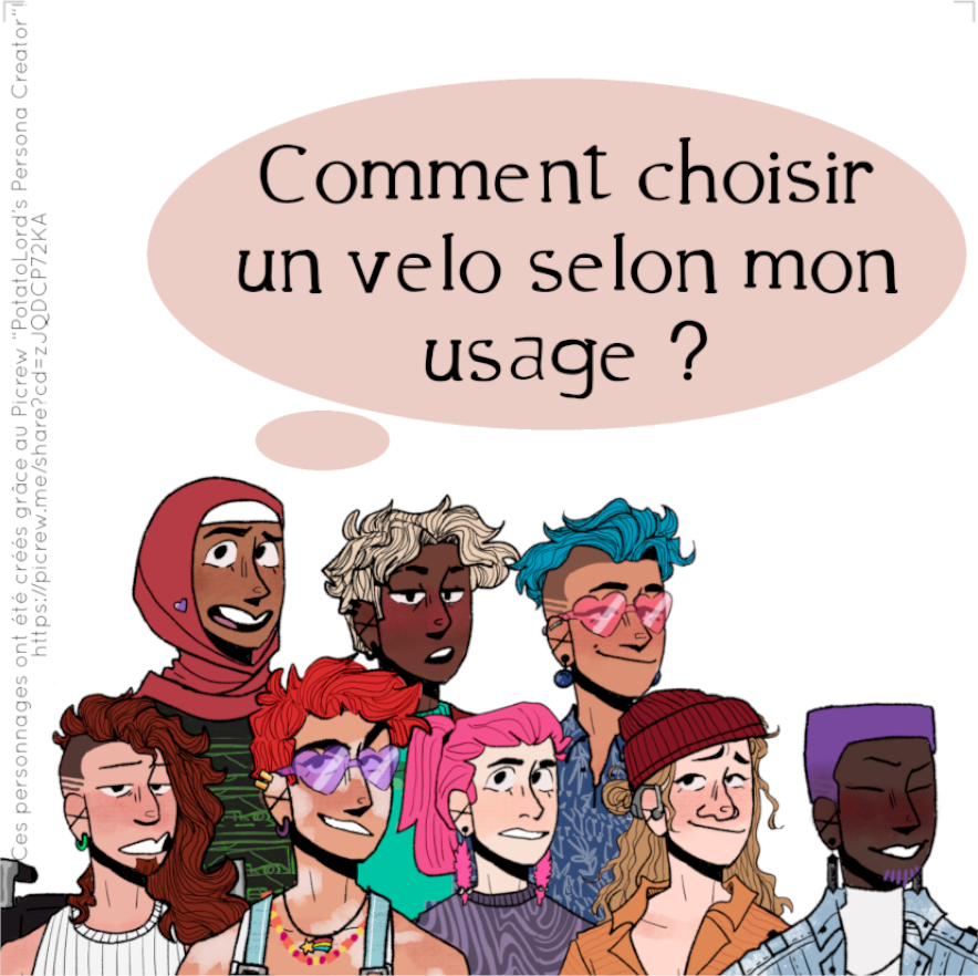 -->Pour l'animation d'une formation sur la mécanique vélo et le réemploi, j'ai aussi fabriqué un petit jeu de carte (sous license CC BY-NC-SA 4.0). L'idée est d'étaler plein de cartes sur une table, chacune représentant une partie d'un vélo (un type de roue, de pédales, une transmission etc.). Ensuite, les joueur·euses piochent une des huit cartes personnages qui expriment un besoin de vélo pour correspondre à son usage. Les participant·es disposent alors des pions (par exemple des petites quicailleries de vélo) sur les cartes qu'iels sélectionnent pour leur vélo. On peut ensuite débriefer des choix.
